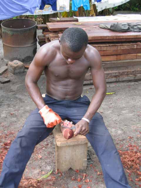 Nous vous présentons ici la technique de sculpture du jeu d'awalé. Ce jeu traditionnel africain est fabriqué pour ses versions les plus communes en bois d'iroko ou d'acajou. Ces photos ont été faites en Côte d'Ivoire.