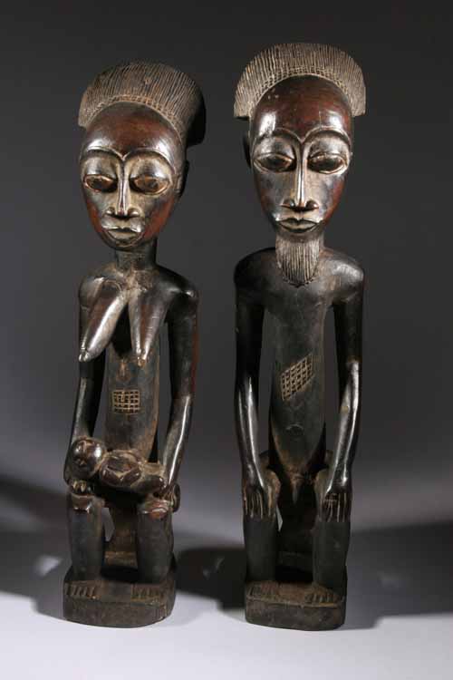 Les statues Baoulé correspondent à deux cultes différents : les « époux de l'autre monde », blolo bla pour une femme, et blolo bian pour un homme ; les asie usu ou « génies de la terre » utilisées par les devins.