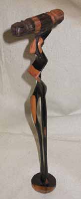les sculptures en ébène ou en aloa. Plusieurs espèces d'arbres de la famille des Ebenaceae et appartenant au genre Diospyros portent le nom d'ébène ou sont aussi appelés Ébènier. Elles se rencontrent dans les régions tropicales de l'ancien Monde et sont connues depuis la plus haute Antiquité pour la couleur noire de leur bois. Déjà à l'époque de l'Égypte pharaonique, ce bois entrait dans la composition de petit objets précieux de toutes sortes. L'ébène est un bois précieux en provenance essentiellement du mali mais aussi pour certaines catégories du Ghana et du Togo. L'ébènier est un arbre de petite taille dont le diamètre du tronc est de petite section. Il ne permet pas la réalisation sans collage de pièces de grandes dimensions. L'ébène est un bois très dur et très dense. La sculpture est très difficile nous vous livrons un petit reportage sur ce sujet dans les pages fabrication. Cet artisanat africain nous permet de vous proposer une grande variété de pièces. Les sculptures en ébène qui vous sont proposées sont classées en quatre catégories: les abstraits, les animaliers, l'art de la table, les objets divers. Les abstraits en ébène. Cliquez sur les photos si vous souhaitez les agrandir